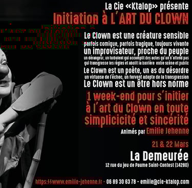 La Cie Ktaclop présente : Un week-end pour s'initier à l'art du clown en toute simplicité et sincérité. Animé par Émilie Jehenne.