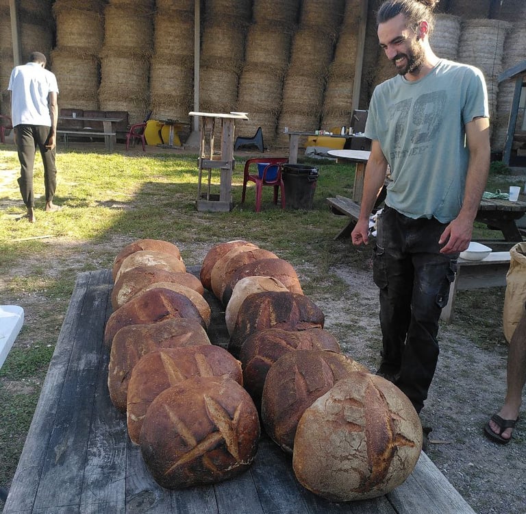 Avec les ateliers Painpain, notre souhait est de pérenniser une petite production de pain à la Demeurée à destination des participant.e.s de l'atelier et des paniers d'Amap !