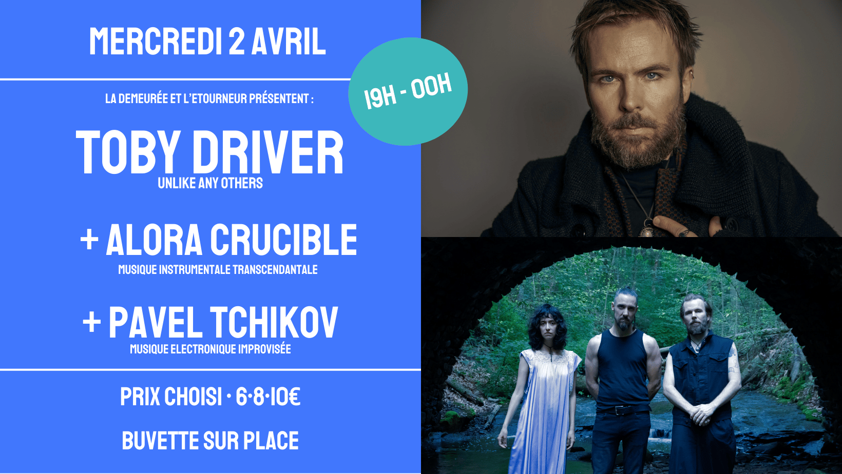 MERCREDI 2 AVRIL 2025 • TOBY DRIVER + ALORA CRUCIBLE + PAVEL TCHIKOV